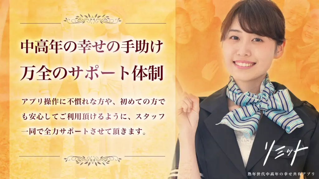 リミットは中高年・熟年・シニア世代のための幸せ共有アプリです。